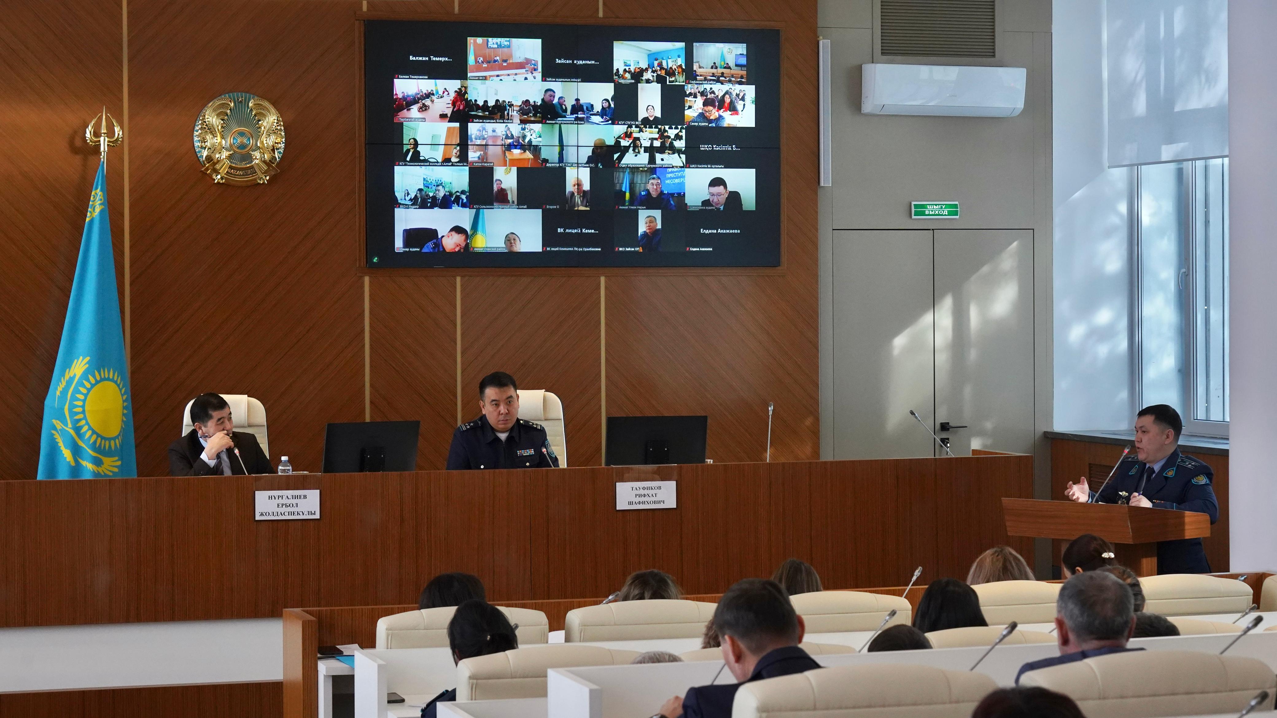 председательством заместителя акима области Нургалиева Е. Д. , которое было посвящено вопросам профилактики правонарушений, буллинга, суицида среди несовершеннолетних. В ходе совещания обсудили реализацию стратегического курса, заданного Главой госудаоства