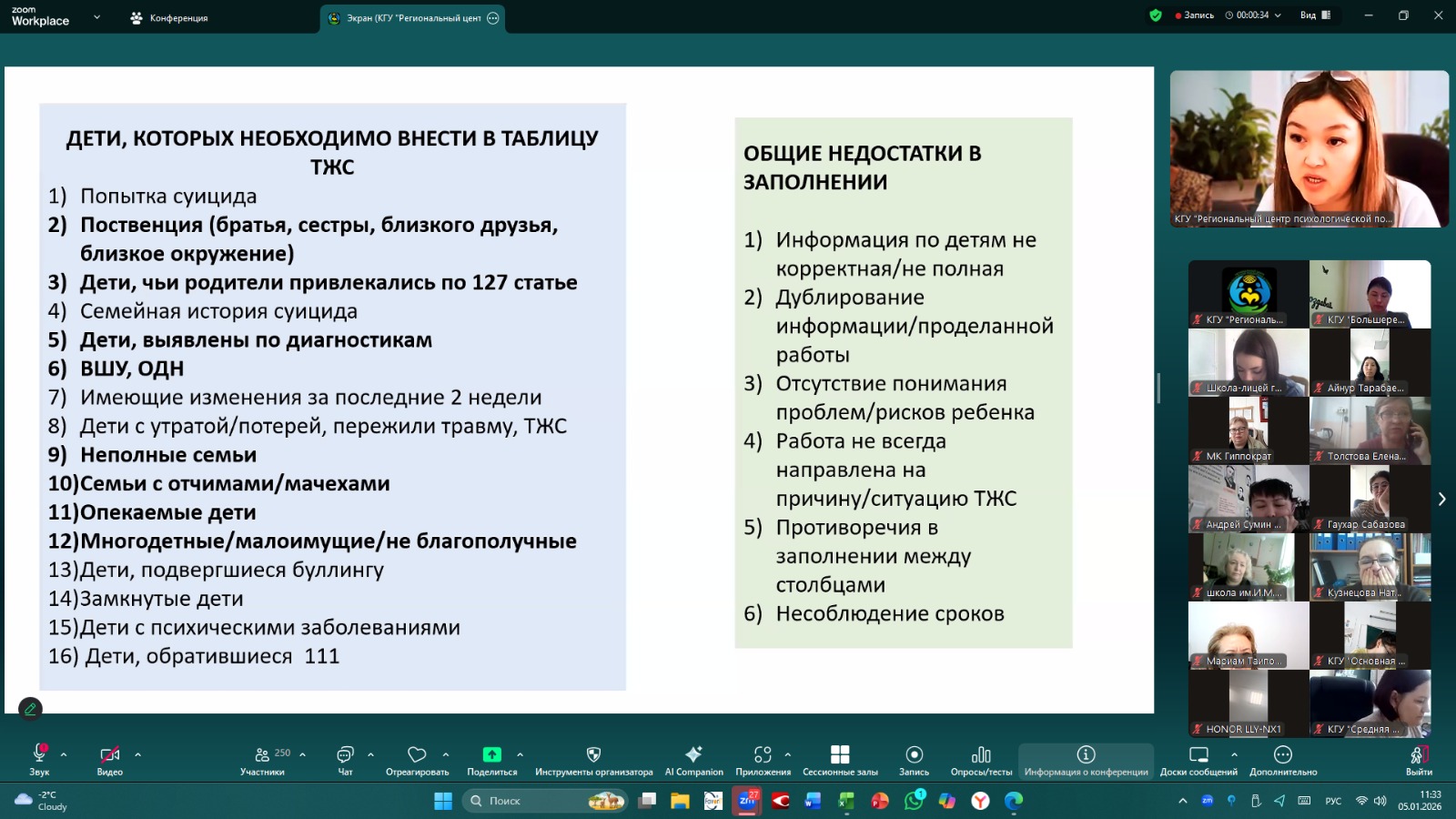 В ходе совещания рассмотрены социальные, психологические и поведенческие риски несовершеннолетних, вопросы раннего выявления и сопровождения детей, нуждающихся в особом внимании, а также актуальные аспекты профилактической и коррекционной работы. Особое внимание уделено необходимости комплексного междисциплинарного подхода, координации деятельности специалистов системы образования и использованию аналитических и статистических данных при планировании мер поддержки. По итогам совещания определены приоритетные направления дальнейшей работы, направленные на повышение эффективности психологической и социальной помощи детям группы риска
