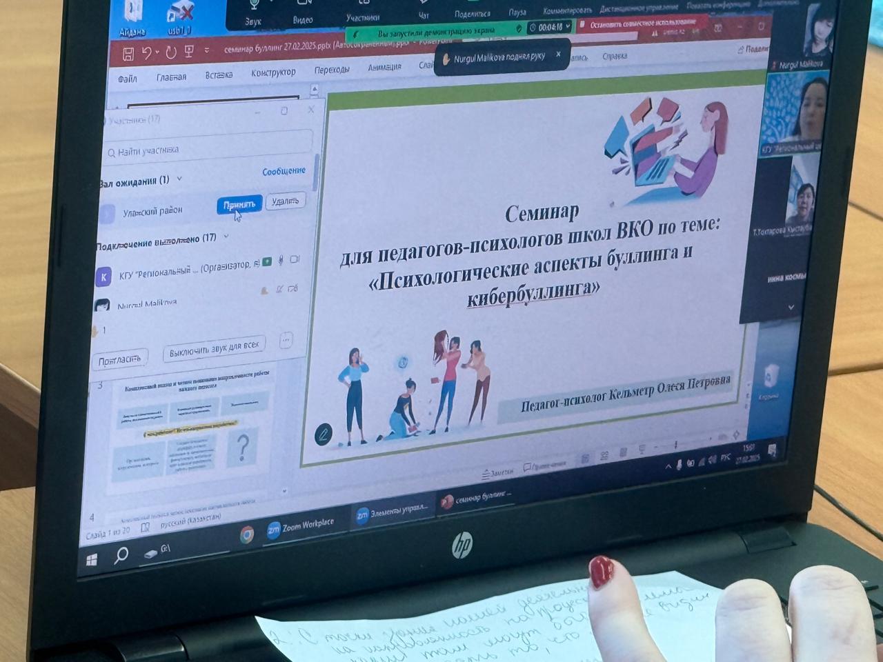 27 февраля 2025 года КГУ «Региональный центр психологической поддержки и помощи УО ВКО педагог-психолог Кельметр О.П., провела онлайн-семинар для педагог-психологов школ области на тему «Психологические аспекты буллинга и кибербуллинга». В ходе семинара участники рассмотрели ключевые понятия, формы и механизмы возникновения буллинга и кибербуллинга, а также влияние групповой динамики, школьного климата и семейного воспитания на уровень агрессии в детских и подростковых коллективах. Особое внимание было уделено профилактике и коррекционной работе педагога-психолога в ситуациях буллинга. Были представлены теоретические и практические аспекты темы, после чего участники обменялись опытом и получили рекомендации для работы. Обсуждение в конце семинара позволило выявить основные сложности, с которыми сталкиваются специалисты в образовательной среде, и наметить пути их решения. Семинар подтвердил важность комплексного подхода к борьбе с буллингом, который включает взаимодействие школы, семьи и других заинтересованных специалистов, а также необходимость выполнения каждым участником образовательного процесса своих функций. Благодарим всех участников за активную работу!