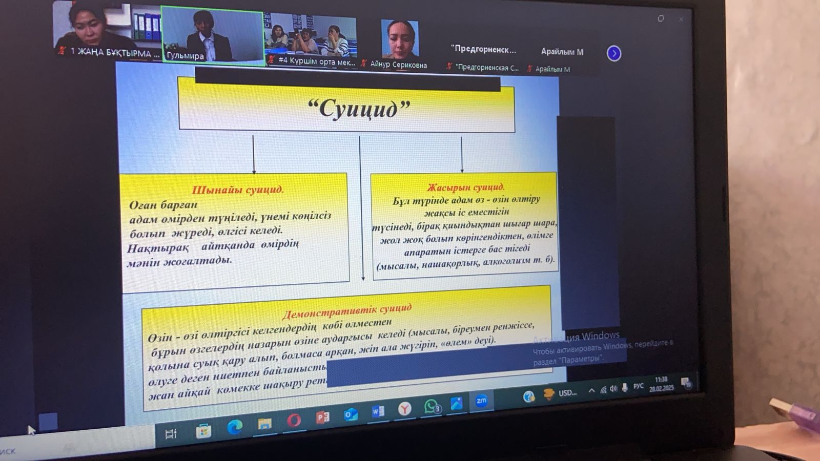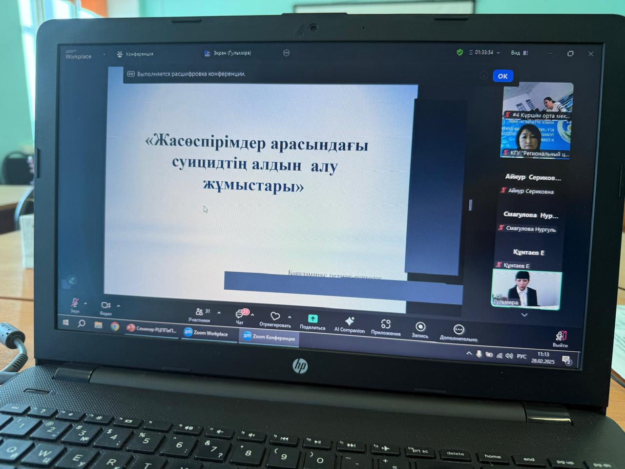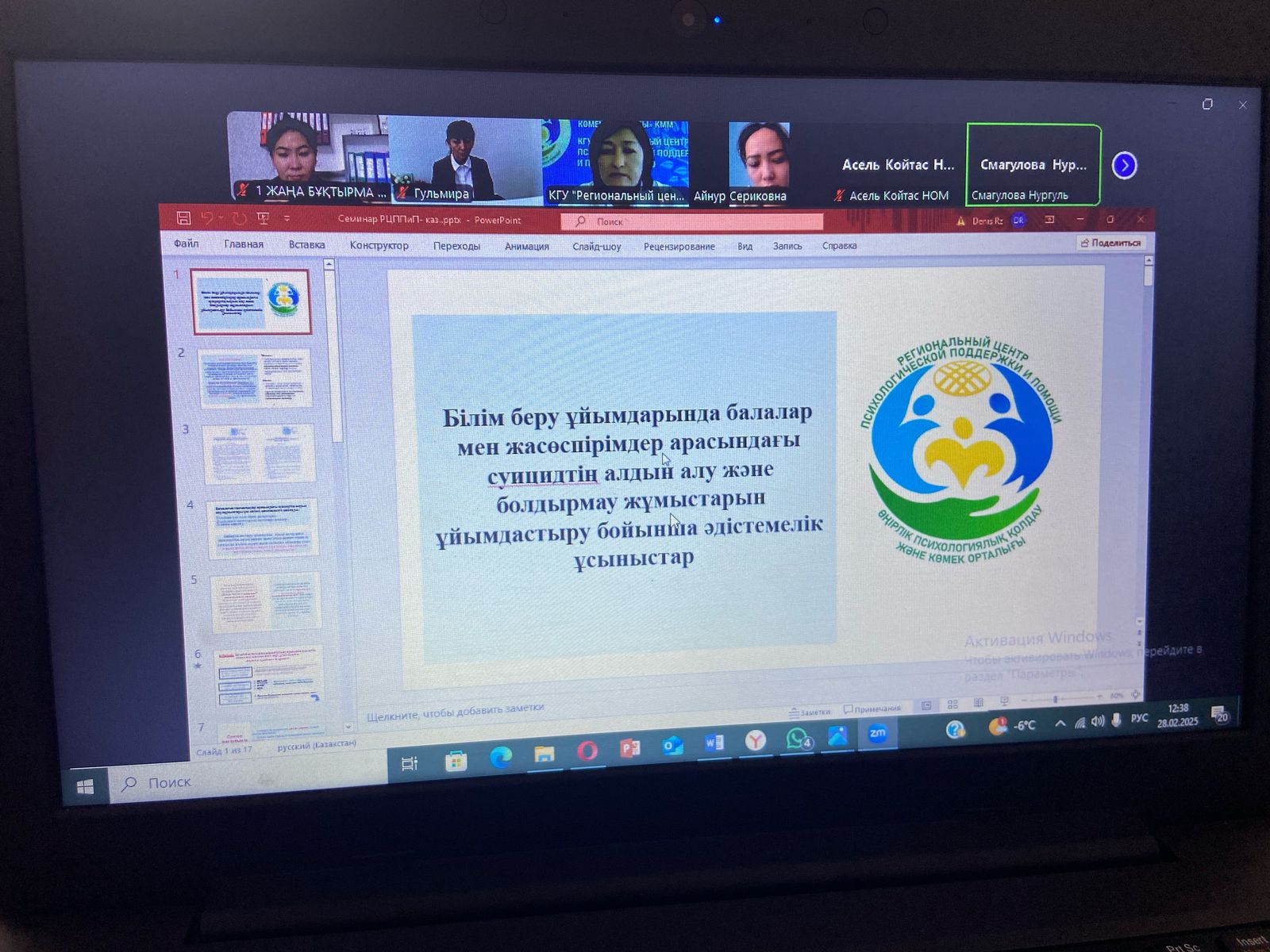 28 февраля 2025 года состоялся областной семинар в онлайн-режиме ZOOM «Профилактика суицида среди подростков», организованный совместно с КГУ «Региональный центр психологической поддержки и помощи» УО ВКО.