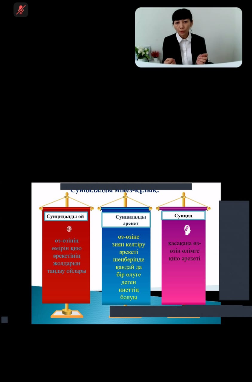 Методист Регионального центра Уалханова Н.К. дала подробные разъяснения по методическим рекомендациям, касающимся организации работы по профилактике и предотвращению суицида среди детей и подростков в организациях среднего, технического и профессионального образования.