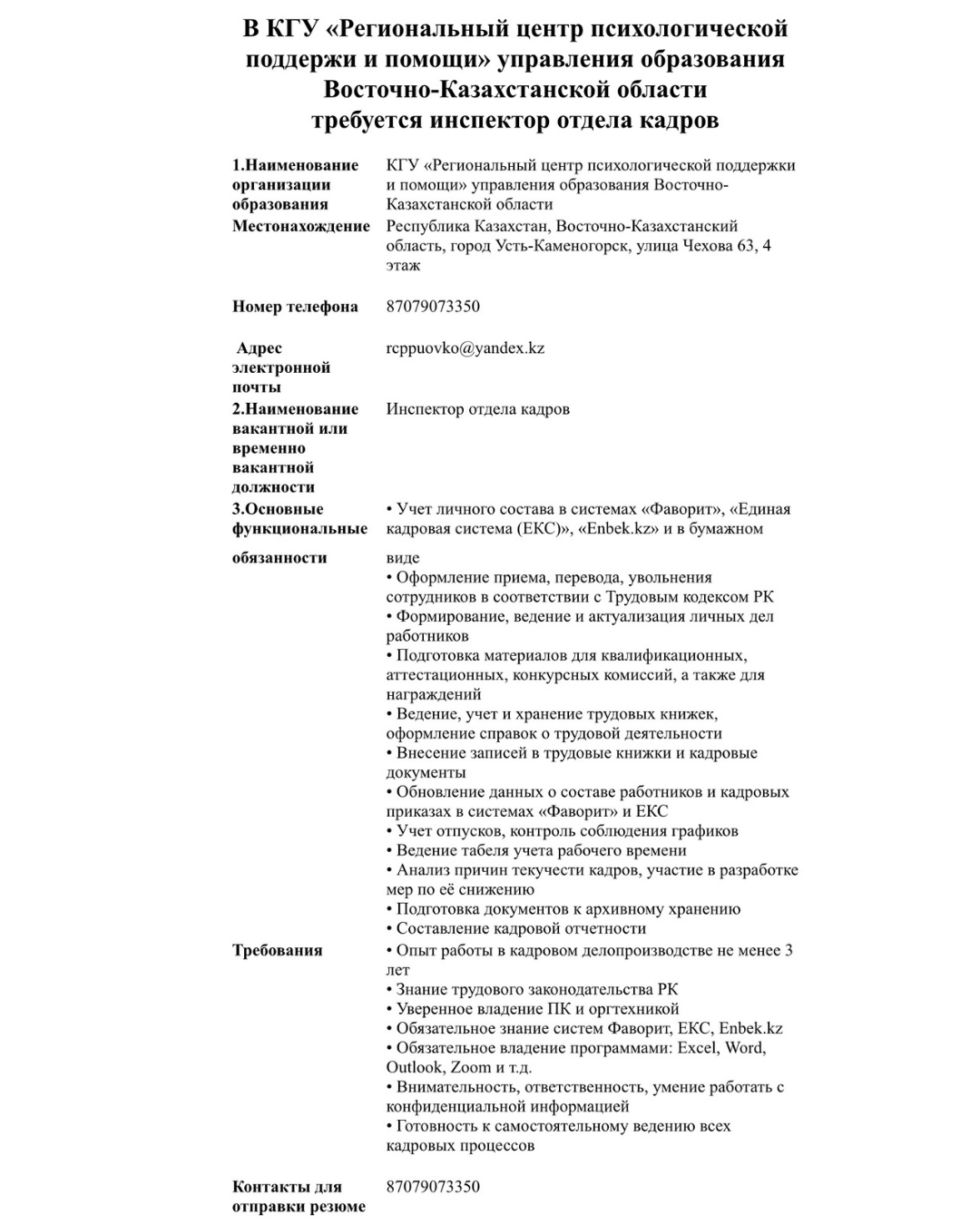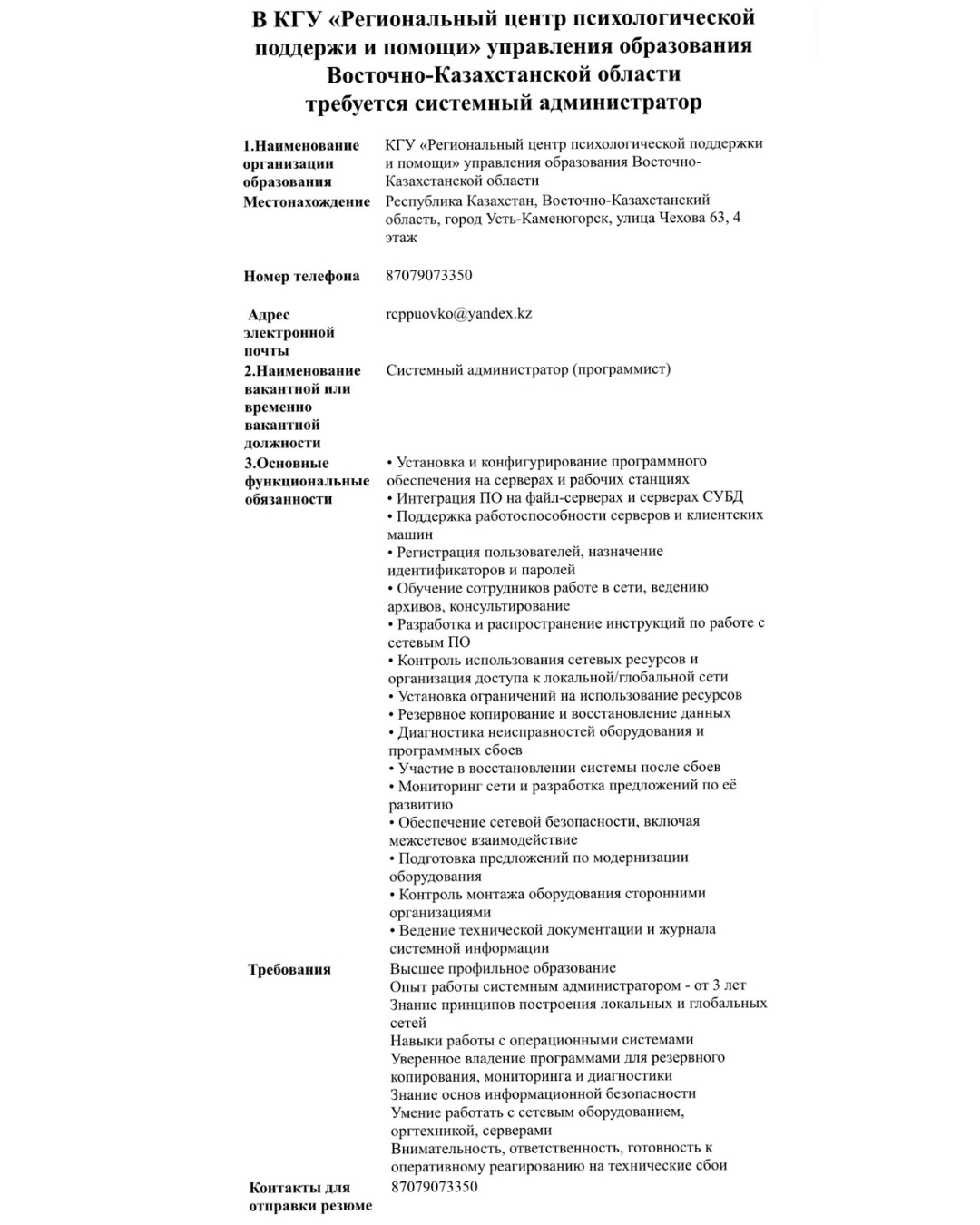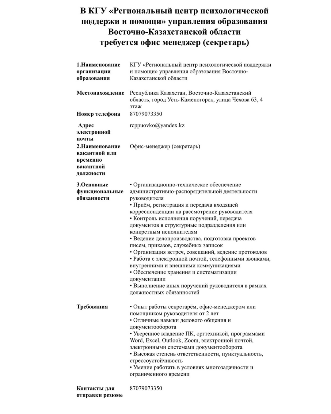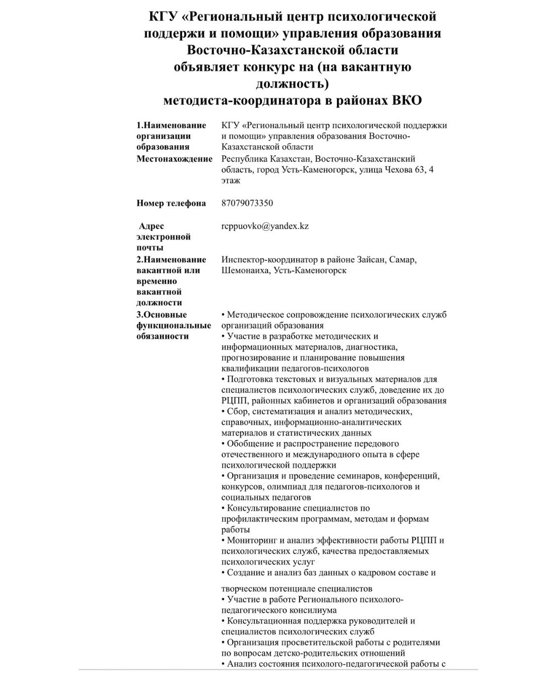 КГУ "Региональный центр психологической поддержки и помощи" управления образования Восточно-Казахстанской области